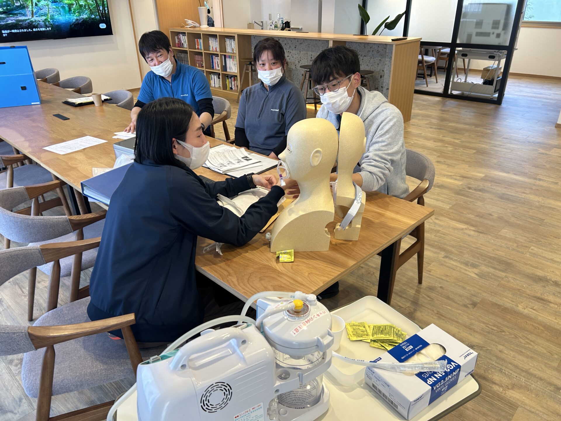 2026年1月23日、社会福祉法人博愛会 第一博愛寮において、喀痰吸引研修を実施いたしました。入所施設において看取り・終焉支援を継続していくためには、職員の専門性向上が不可欠であり、本研修はその一環として行われたものです。
